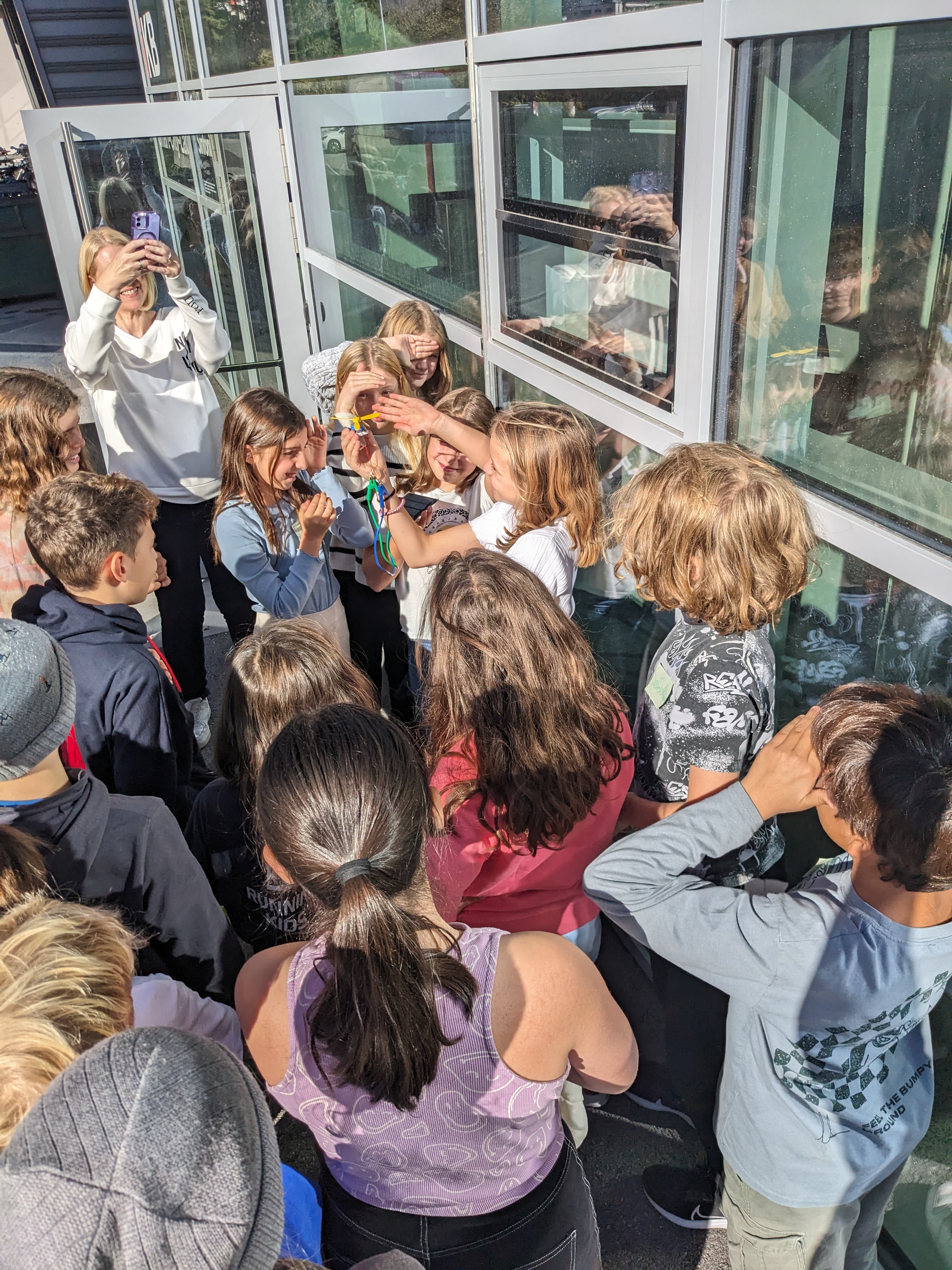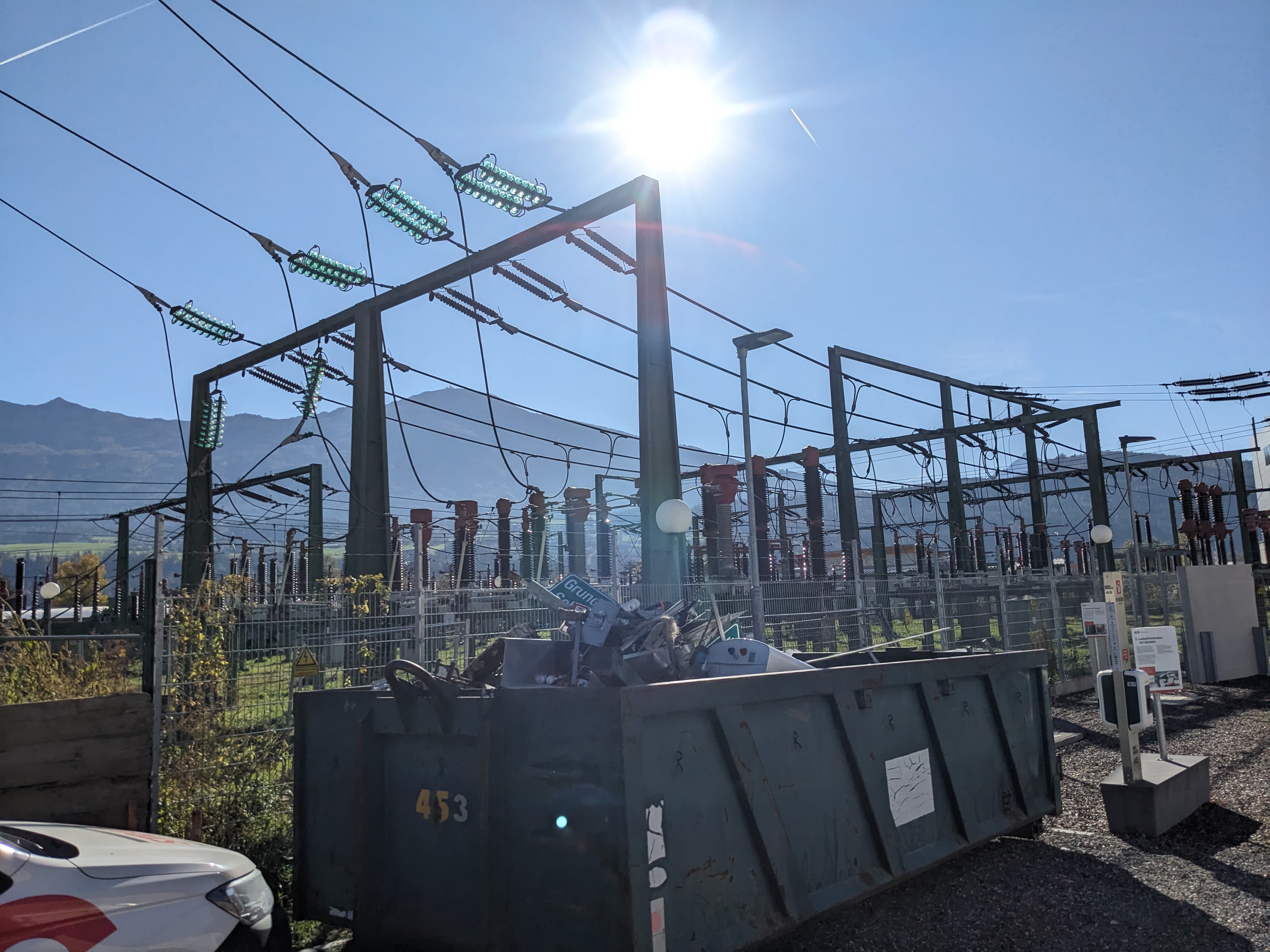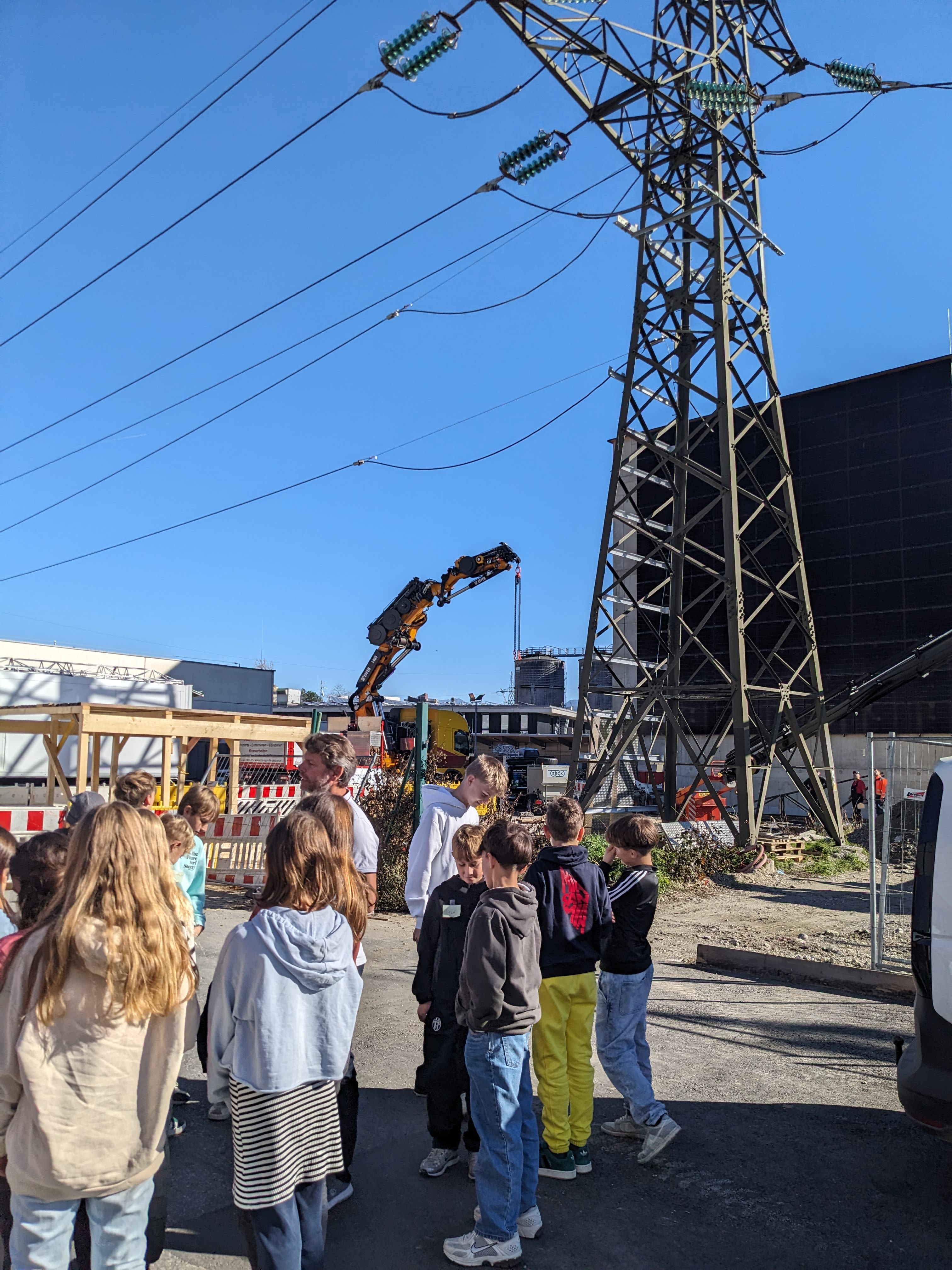 Vor dem IKB-Smart-City-Lab können sich die Schüler:innen ein Bild davon machen, wie der Strom in unsere Steckdosen gelangt. So lernten sie die wichtigsten Stationen der Strominfrastruktur kennen: Vom Kraftwerk, wo der Strom erzeugt wird, über die Stromleitungen und Umspannwerke, die den Strom transportieren und verteilen, bis hin zu den Haushaltssteckdosen, aus denen er schließlich genutzt werden kann.