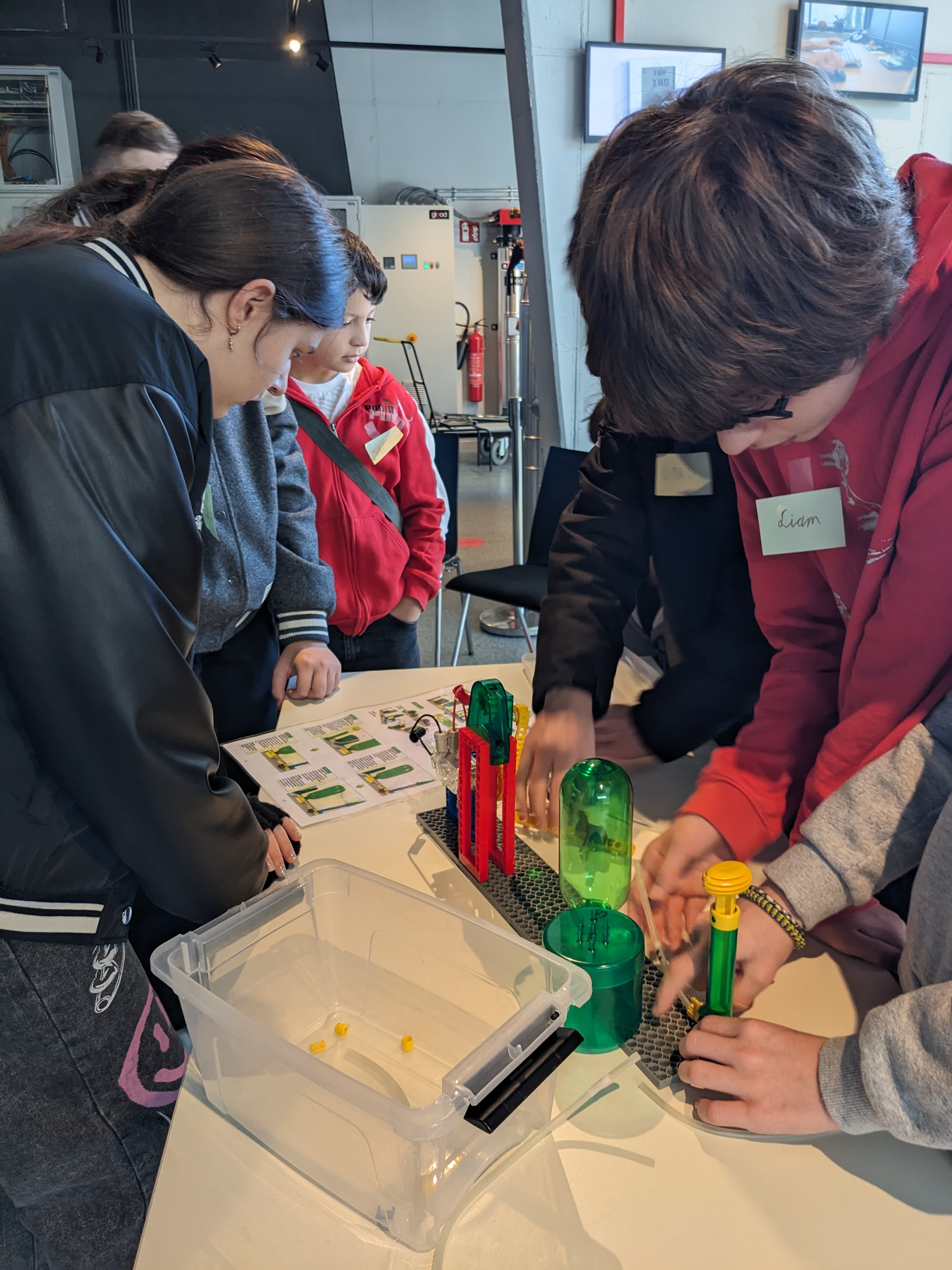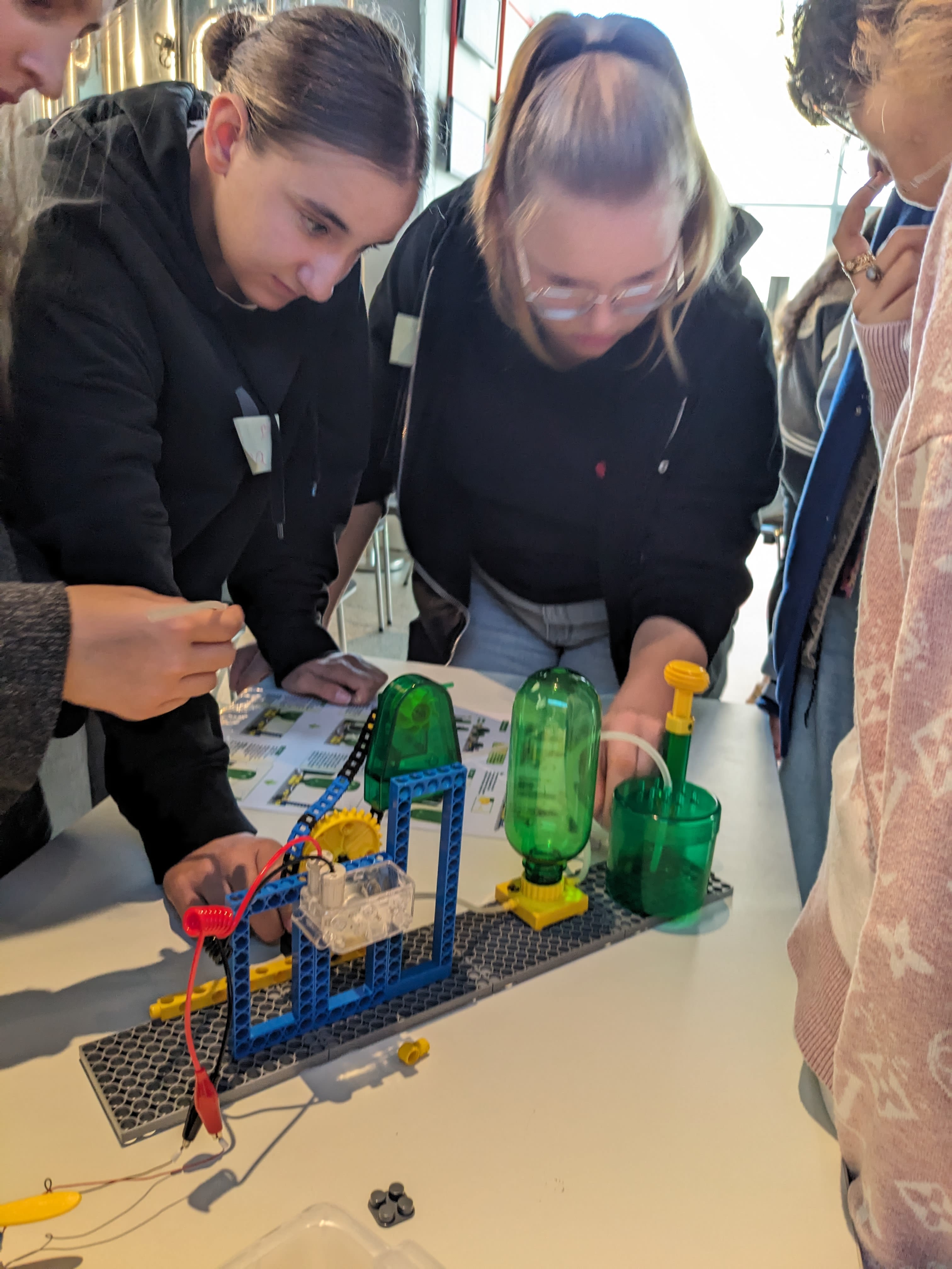 Wie das genau funktioniert, konnten die Schüler:innen selbst ausprobieren: Sie bauten ein kleines Pumpspeicherkraftwerk und brachten damit die Turbine zum Laufen. So wurde ganz praktisch gezeigt, wie aus der Kraft des Wassers Strom entsteht.
