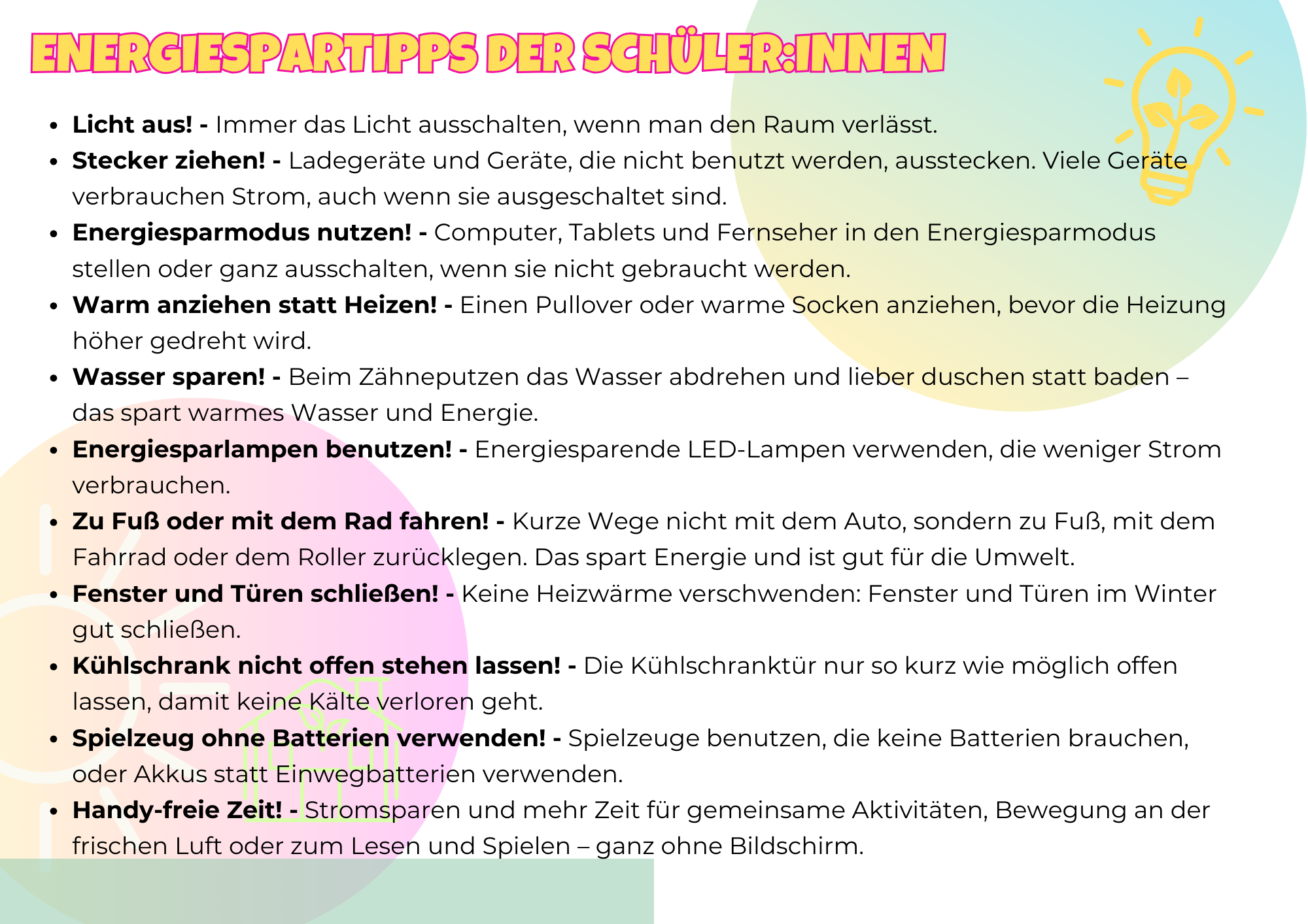 Ein Workshop für die drei Volksschulklassen zum Thema Energiesparen.