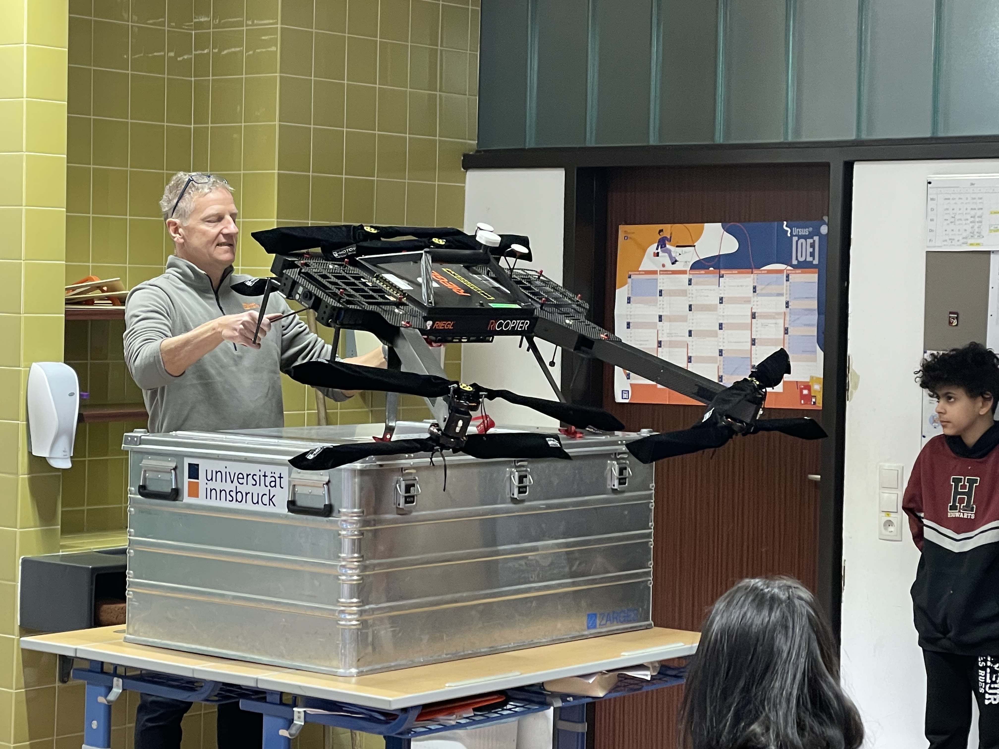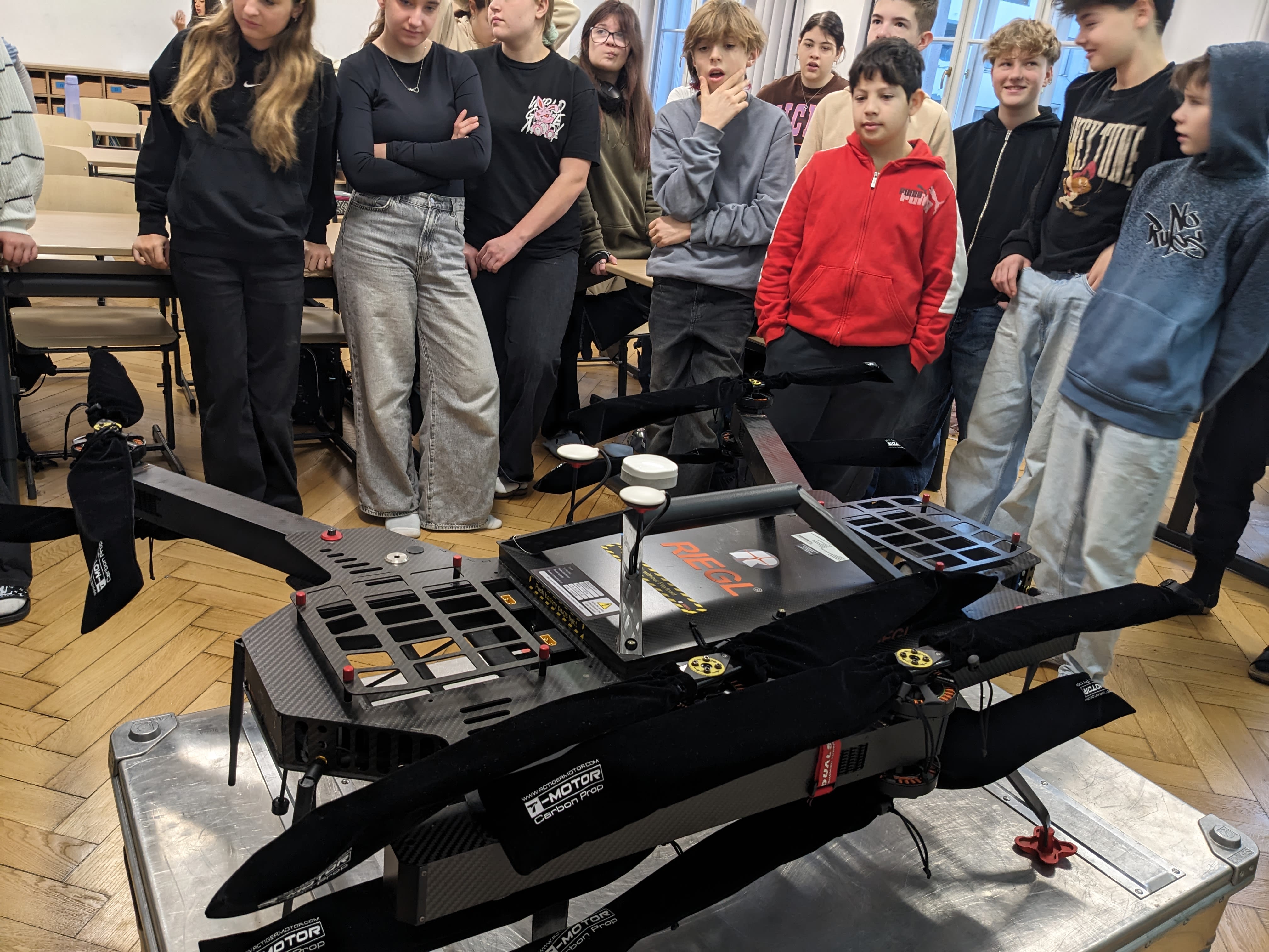 "Und? Kann man mit der Drohne mitfliegen?" fragt jemand. Freddy: "Leider nicht! Aber dafür sehen wir mit den aufgenommen Daten die Welt aus der Vogelperspektive."