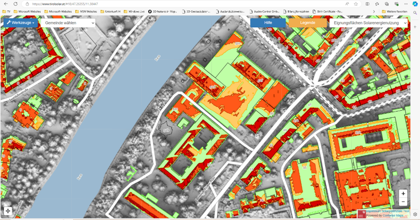 Wer wissem möchte, wie gut das eigene Dach für die Nutzung von Sonnenenergie geeignet ist, kann das mit dem Solarpotential-Kataster von tirisMaps herausfinden.
