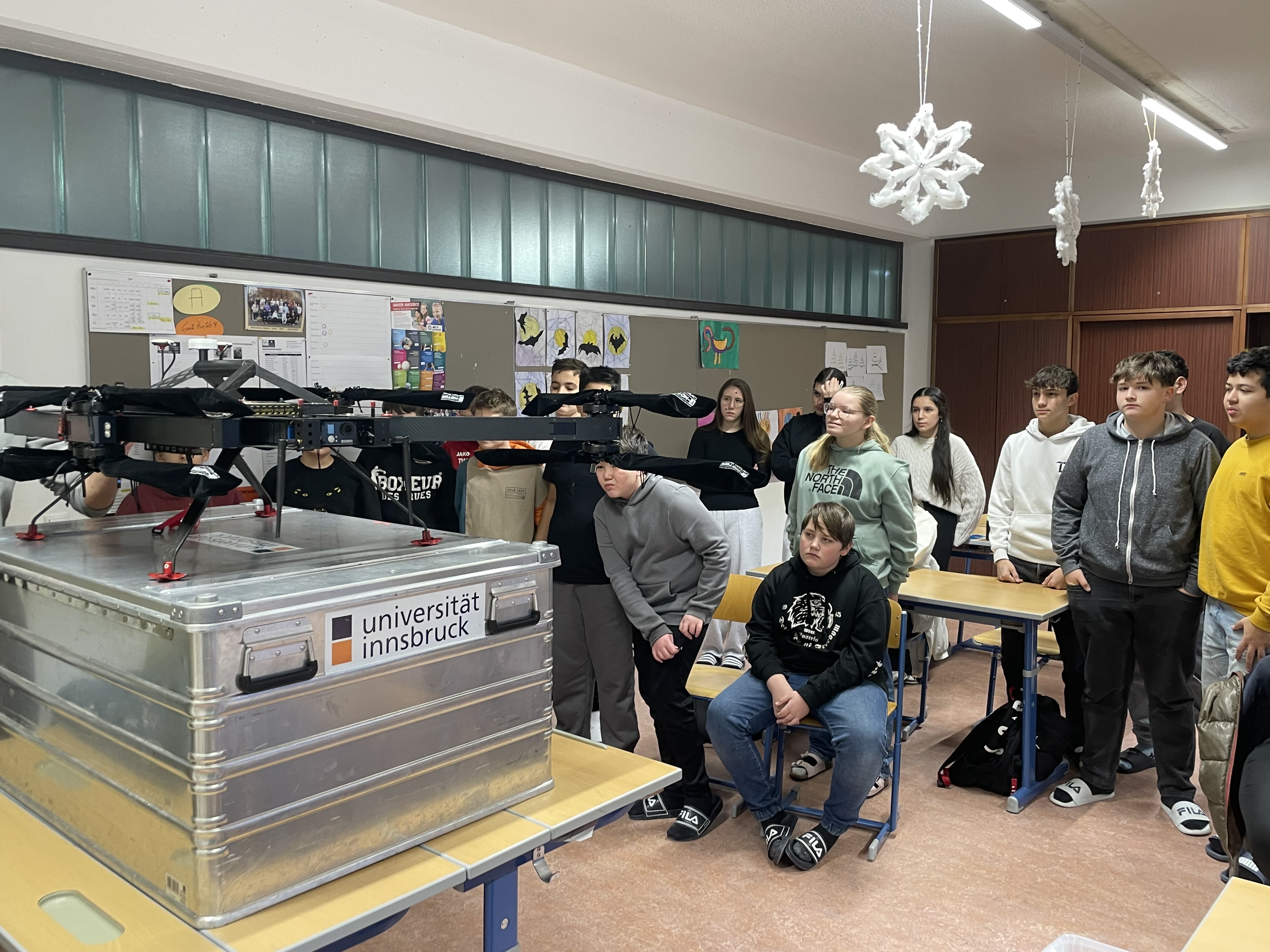 Neugierige Blicke richteten sich auf die schwere Kiste, die Freddy mitgebracht hatte. Was war wohl darin versteckt? Ein Schatz? Ein geheimes Experiment? Die Antwort: Eine hochmoderne Drohne!