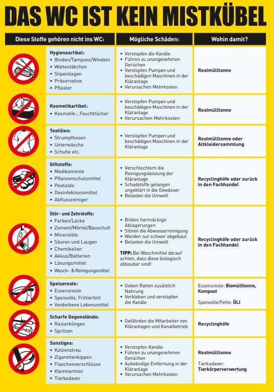 Wichtig: Nur Toilettenpapier gehört ins Klo – Müll gehört in den Mülleimer!